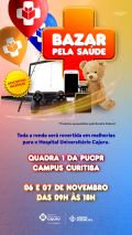 Bazar pela Saúde: produtos são vendidos com preço abaixo do mercado para arrecadar fundos para Hospital Universitário Cajuru Evento acontece nos dias 6 e 7 de novembro no campus da PUCPR no Prado Velho, em Curitiba (PR), e oferece mercadorias apreendidas pela Receita Federal O Hospital Universitário Cajuru realiza, nos dias 6 e 7 de novembro, o “Bazar pela Saúde”. O evento será na Quadra 1 do campus da Pontifícia Universidade Católica do Paraná (PUCPR) no Prado Velho, em Curitiba (PR), das 9h às 18h. Com valores abaixo das lojas convencionais, estarão disponíveis produtos apreendidos e destinados pela Receita Federal, como eletrônicos, brinquedos, artigos de pesca, perfumaria, ferramentas e muito mais. Todos os recursos arrecadados serão investidos em melhorias na instituição, que oferece atendimento 100% SUS e é referência para casos de traumas e emergências de alta complexidade para Curitiba e Região Metropolitana. O acesso será gratuito e organizado por senha para evitar aglomerações. O bazar terá limite de R$ 700 ou de apenas um produto acima desse valor por CPF. As compras poderão ser pagas em dinheiro ou com cartão de crédito e débito, com a possibilidade de parcelamento em até 4 vezes desde que a parcela mínima seja de R$100. Por serem produtos apreendidos pela Receita Federal, não haverá garantia ou troca, nem a emissão da nota fiscal. Também não é permitida a revenda das mercadorias compradas no bazar. Serviço Ação: Bazar pela Saúde Datas: 6 e 7 de novembro, sábado e domingo Horário: 9h às 18h Endereço: Quadra 1 PUC-PR - Rua Imaculada Conceição, 1155 - Prado Velho, Curitiba/PR. Outras informações: (41) 99685-9405