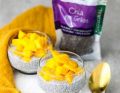 Chia pudding com manga Ingredientes: 1 xícara (chá) de leite de coco 2 colheres (sopa) de sementes de chia 1/2 colher (chá) de extrato de baunilha Gotas de stévia ou adoçante de preferência (opcional) Cubos de Manga Rosa. Modo de Preparo: